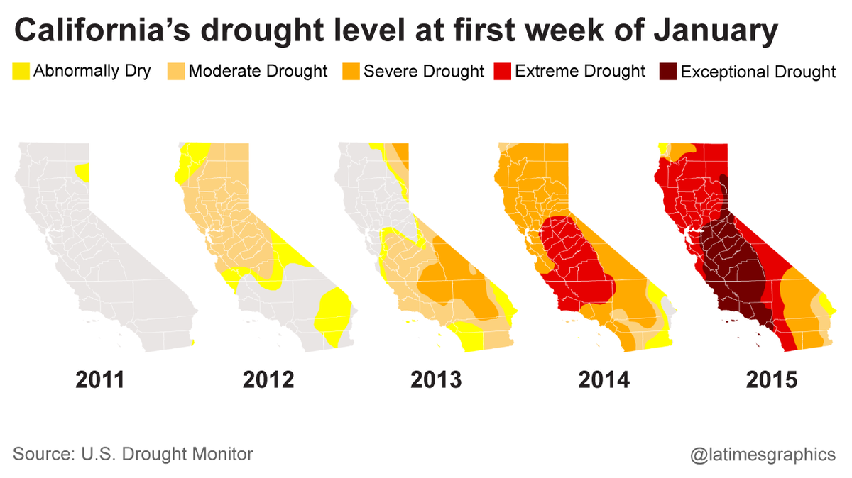 California, a state that has greater influence than most countries, is in the midst of a drought that continues to worsen. In some parts of the state they will set rainfall records that can’t be beat; because you can’t get less than zero rainfall. Snowpack is down. Sea water is intruding into agricultural lands. Reservoirs are emptying. The trend can not continue forever. If the rains don’t arrive, people will eventually have to leave. Dairy farmers are already moving to the Midwest. If the rains return, it will take years of above average rainfall to get back to normal. If it happens faster than that, watch out for mudslides.