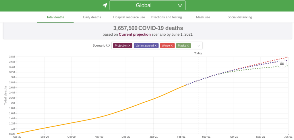 COVID-19 deaths projected by June 1, 2021 – 3,657,500