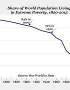The number of extremely poor people is dramatically shrinking, even as global population is growing. From 1820, when 94% were Continue reading